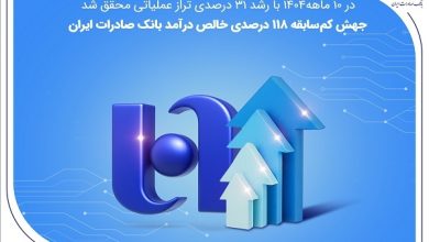 در ۱۰ ماهه۱۴۰۴ با رشد ۳۱ درصدی تراز عملیاتی محقق شد جهش کمسابقه ۱۱۸ درصدی خالص درآمد بانک صادرات ایران