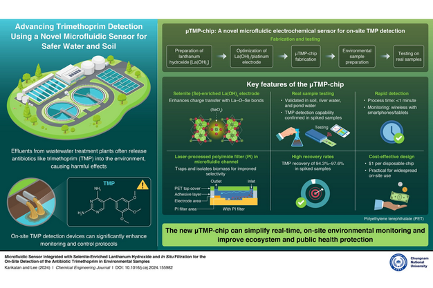 پروفسور Tae-Yun Lee و دکتر Natarajan Karikalan از دانشگاه ملی Chungnam، کره پیشرفت هایی در روش های تشخیص هدایت الکتریکی داشته اند که پتانسیل تغییر آزمایش درجا TMP در فاضلاب آلوده را نشان می دهد. آنها یک حسگر میکروسیال یکبار مصرف آزمایشگاهی EC (LOC) به نام تراشه μTMP را توسعه دادند که برای تشخیص TMP در زمان واقعی طراحی شده است. پروفسور لی توضیح می دهد: “پایش TMP موثر در پساب ها برای پروتکل های کنترل موثر بسیار مهم است. از این رو، هدف ما فعال کردن آزمایش در محل نمونه های آب است.” مقاله آنها در 21 سپتامبر 2024 به صورت آنلاین در دسترس قرار گرفت و در جلد 499 مجله مهندسی شیمی در 1 نوامبر 2024 منتشر شد.