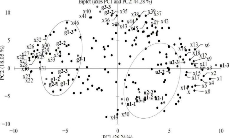 در مجموع 169 متابولیت و ترکیب طعم دهنده با استفاده از تکنیک های کروماتوگرافی گازی (GC-FID و HS-SPME-GC-MS) شناسایی شدند و PCA برای شناسایی منابع اصلی تنوع در بین این ترکیبات استفاده شد. نتایج PCA نشان داد که PC1 و PC2 29/44 درصد از تنوع داده ها را توضیح می دهند و به وضوح RUSF را از RGSF بر اساس ترکیبات کلیدی مانند آلدئیدها، پیرازین ها و قندهای احیاکننده جدا می کنند.