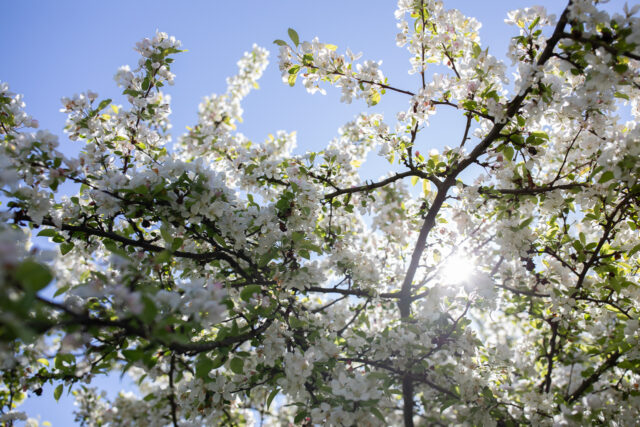 Each spring their fat buds explode into a cloud of fragrant blossoms. When the petals finally start to fade and a breeze comes along, it looks like it’s been snowing out in the garden. By June, the branches are covered in miniature fruit that is perfect for incorporating into arrangements or just admiring in place.