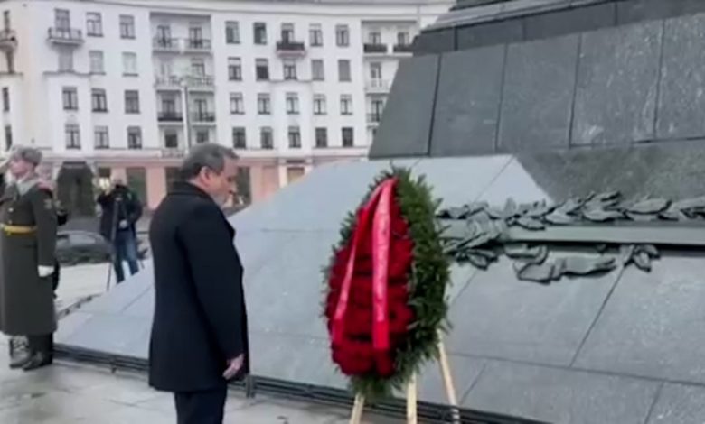 حضور عراقچی در محل یادمان پیروزی در مینسک + فیلم
