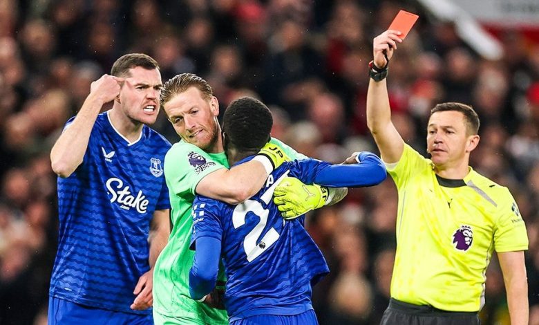 اخراج ادریسا گانا گیه پس از درگیری با مایکل کین، هم‌تیمی خود در اورتون (منچستریونایتد 0-0 اورتون)