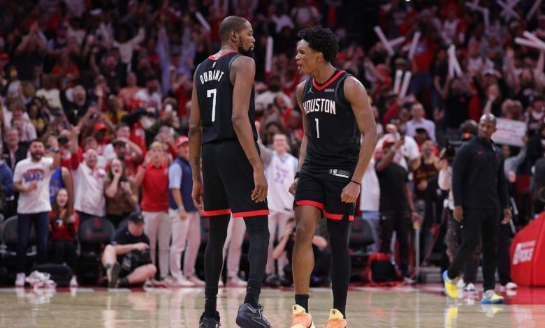 کوین دورنت است دیگر! چه میتوانیم بگوییم؟ دورنت 26 امتیاز مقابل تیم سابقش فینیکس سانز گرفت و شاهکارش را بهفاصله 1.1 ثانیه تا پایان مسابقه انجام داد، زمانی که با سهامتیازی تماشایی خودش، راکتس را مقابل سانز به پیروزی رساند. دوین بوکر تلاش کرد برای دومین شب متوالی، قهرمان فینیکس باشد اما شوت او وارد سبد نشد. دی بوک این بازی را با آمار 27 امتیاز تمام کرد. هیوستون این برد را بدون حضور آلپرن شنگون کسب کرد، سنتر ترک حدوداً دو هفته دیگر از میادین دور خواهد بود.