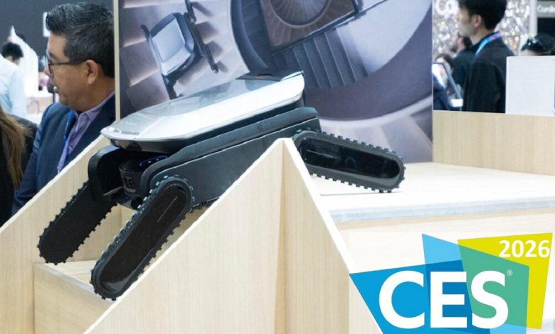 جدیدترین طرح مفهومی جاروبرقی رباتیک در نمایشگاه CES 2026، یک ربات با پاهای عجیب و کمی ترسناک است که میتوانند از پلههای بزرگ بالا بروند.