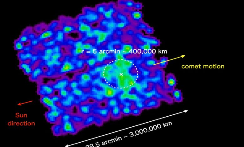 میدان دید عکس ثبت‌شده در پرتو ایکس از دنباله‌دار، منطقه‌ای را به مساحت حدود سه میلیون کیلومتر مربع پوشش می‌دهد و پرتوهای ایکس را از منطقه‌ای به مساحت حدود ۴۰۰ هزار کیلومتر در اطراف هسته دنباله‌دار آشکار می‌کند. این می‌تواند ناشی از ابر گازی پراکنده‌ای باشد که دنباله‌دار را احاطه کرده است؛ اگرچه نیاز به تجزیه و تحلیل بیشتر دارد.